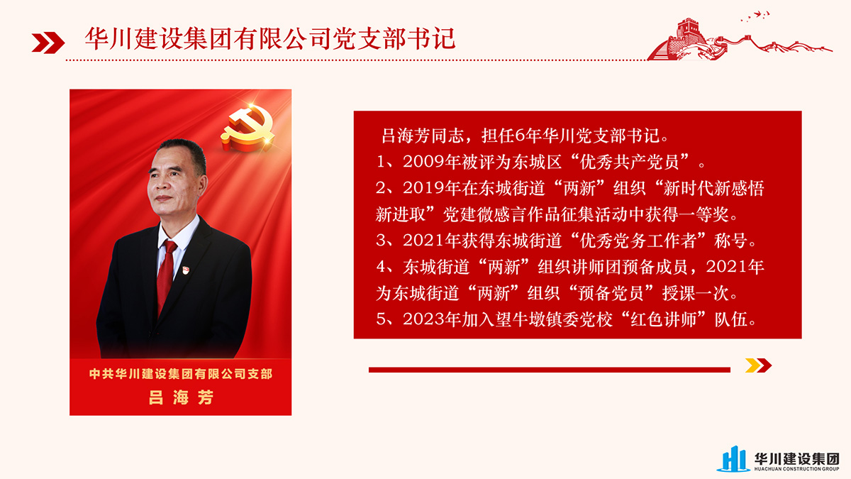 华川建设集团坚持党建引领,指导企业发展,将党的政治优势、组织优势转化为企业的发展优势,为企业把关定向、立标铸魂,为推动企业经营规范化建设和企业高质量发展贡献力量。