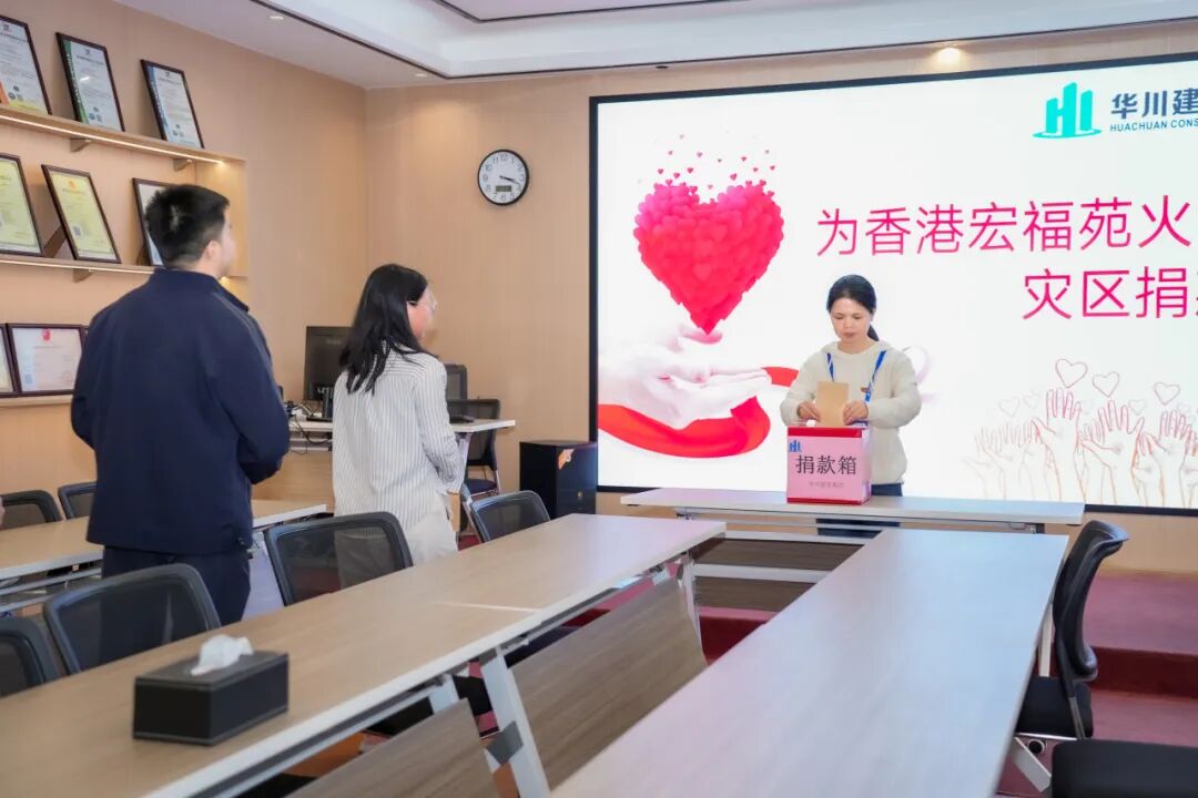 连日来,香港大埔火灾的灾情,始终牵动着全国人民的心弦。为传递华川集团对香港同胞的深切关怀,凝聚起同心共渡难关的磅礴力量,集团近日发起“香港大埔火灾救援公益行动” 专项捐款倡议,总部与各项目部同步设立爱心捐款箱,全体员工踊跃参与其中,以实际行动书写着“守望相助”的温暖篇章。
