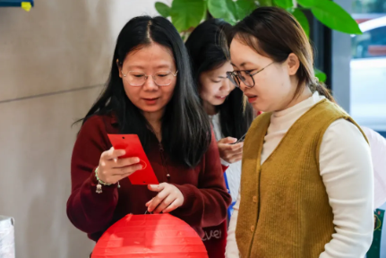 活动当天,总部办公区域洋溢着浓厚的节日气息。员工们纷纷前往猜灯谜区域,有序领取专属灯笼,随后移步前台参与抽谜环节,现场秩序井然、欢声笑语不断。